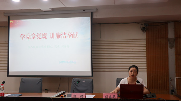 会上,党委书记刘春英以《学党章党规 讲廉洁奉献》为题授课,从认真抓好党章党规学习,培育“三种”修养;严格落实党风廉政责任,争做“四有”新人;牢固树立规矩意识,养成“三种”品质;加强责任意识,甘于“六字”奉献等四个方面,对在场的党员和领导干部进行了深入的党性教育。