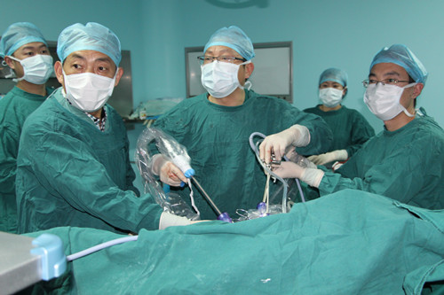 潼南区首例单孔腹腔镜卵巢囊肿剥除术