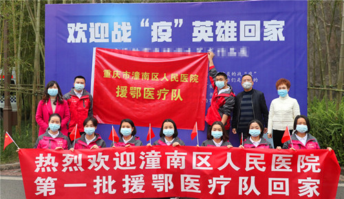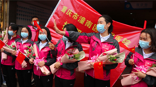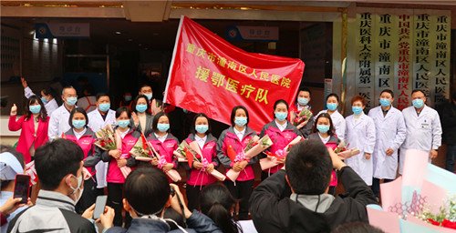 欢迎仪式上,院领导班子为队员们送上鲜花欢迎他们平安归来,并致以崇高的敬意,同时向队员们的家属表示诚挚的慰问。刘春英表示:疫情当前,潼医人积极请战,毫无畏惧投入防控救治工作,日夜奋战、不辱使命,以医者的使命担当和精湛的技术服务,为新冠肺炎患者带去了希望,展现了潼医人医者仁心的崇高精神和新时代医务工作者的良好形象。