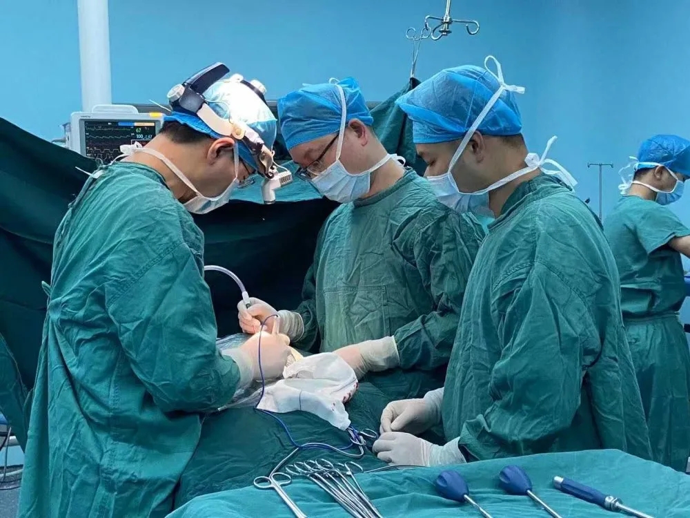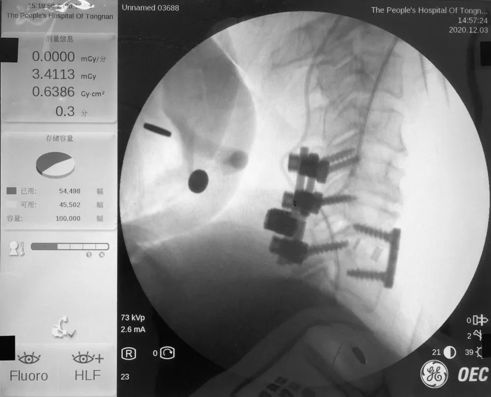 为确保手术顺利开展,科室团队反复斟酌、制订手术方案后,在院本部脊柱外科郝杰教授的指导下,进行了“经颈椎后路椎管减压+颈5.6.7椎体侧块螺钉融合固定+经前路颈5.6椎间盘摘除、椎管减压、椎间植骨融合、内固定”手术。经过近5个小时手术,患者手术顺利,术后病情无反复,持续治疗中。