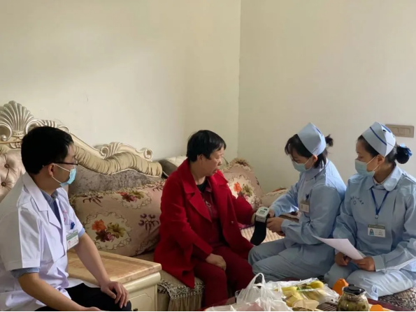 4月16日,心血管内科副主任张富强及护士长夏明嫔带领科室护理骨干一行赶赴两名患者家中,对患者进行回访。随访中,医护人员耐心细致的询问患者近期情况,对患者当前身体情况进行了检查评估,同时护理人员为患者测血糖、血压并向患者及家属进行了饮食指导及告知注意事项。患者及家属都感到很欣慰,向医护人员竖起了大拇指。