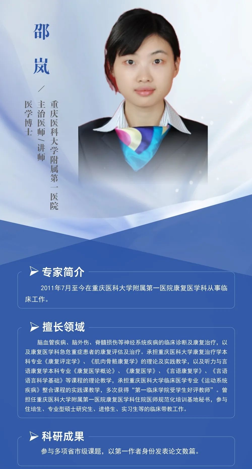 坐诊地点:门诊二楼内科A区康复医学科